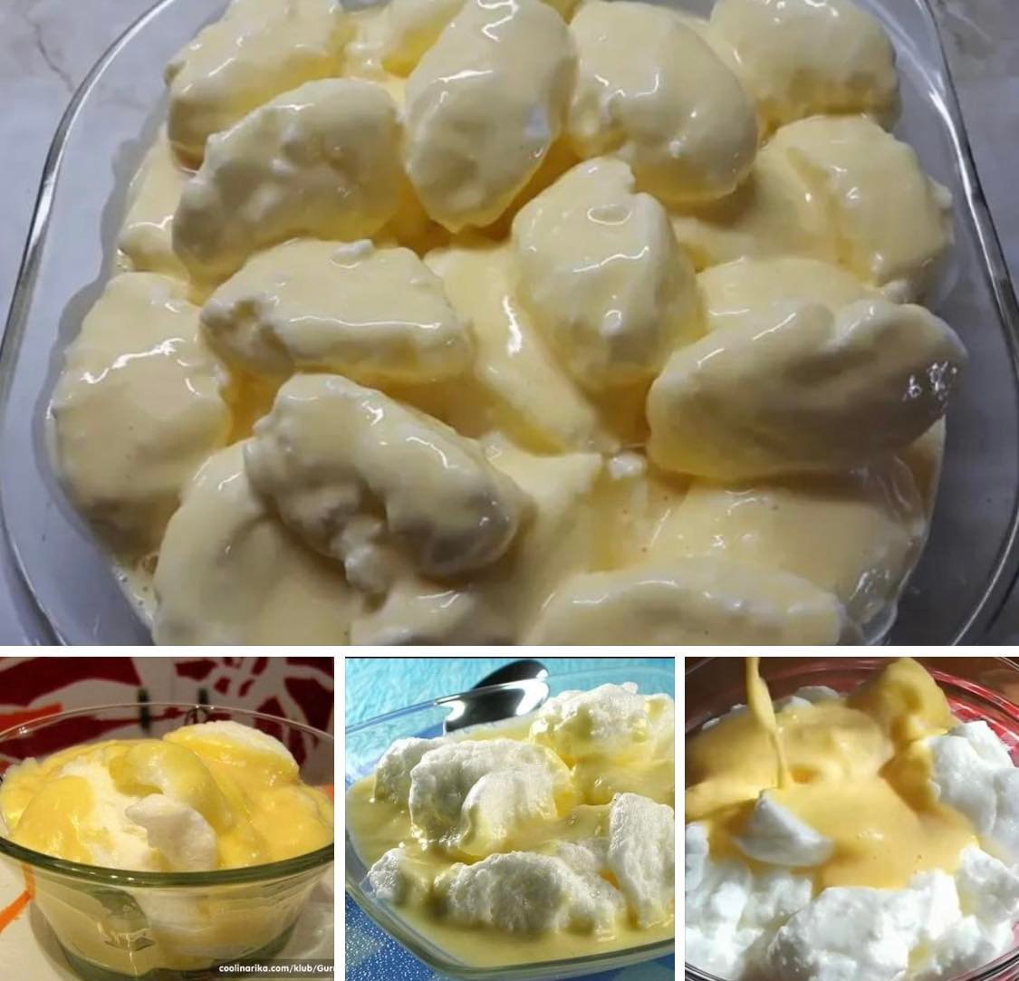 Sastojci: – litar mleka – 4 jajeta – 6 kašika šećera – 2 kesice vanilin šećera – 2 pune kašike brašna Priprema: Odvojiti žumanca od belanaca. Sipati mleko u šerpu sa debelim dnom i uključiti ringlu na srednju jačinu. Dok se mleko greje, veoma čvrsto umutiti belanca.