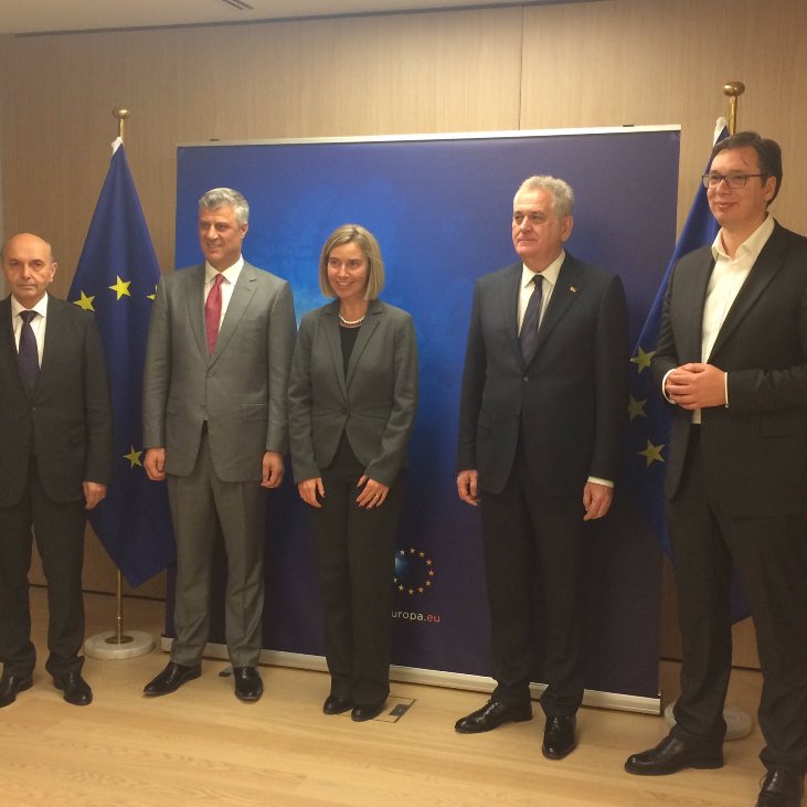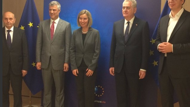 Prethodno je Mogerini imala odvojene sastanke sa delegacijom Beograda u kojoj su predsjednik i premijer Srbije Tomislav Nikolić i Aleksandar Vučić a zatim i sa delegacijom Prištine u kojoj su predsjednik i premijer Kosova Hashim Thaçi i Isa Mustafa.