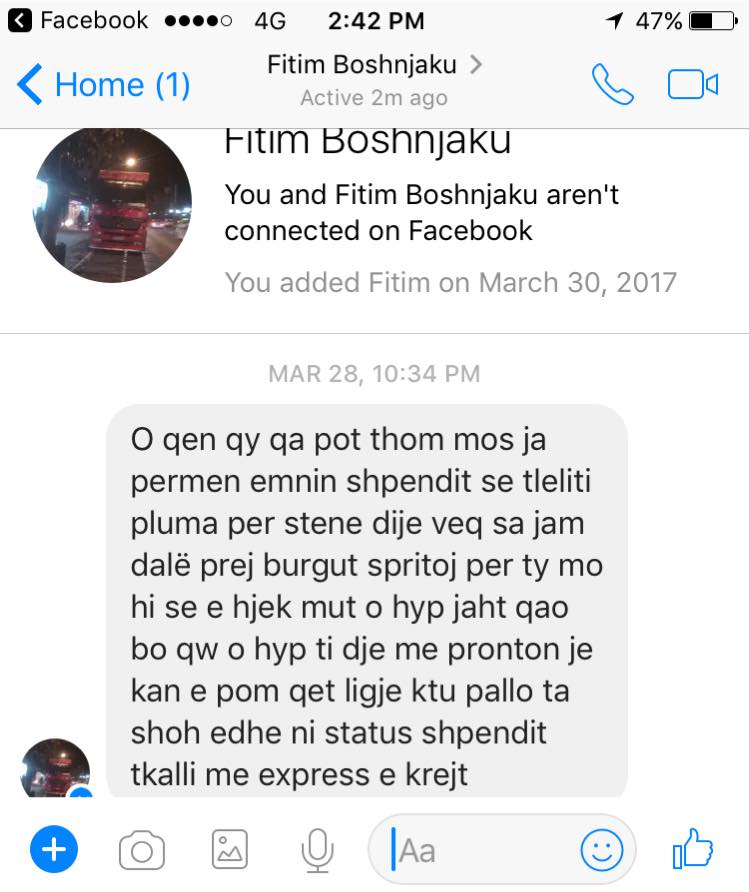Direktor portala Gazeta Express, Berat Buzhala, primio je pretnje ubistvom od izvesnog Fitima Boshnjakua. U prijetećoj poruci koji mu je poslao, Boshnjaku je zatražio od Buzhale da ne pominje Shpenda Ahmetija (gradonačelnika Prištine, prim. red.), jer će ga ubiti ukoliko to učini.