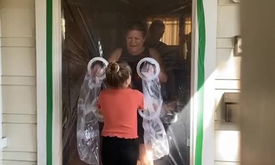 10-godišnja djevojčica dosjetila se načina na koji može zagrliti nanu i dedu, s obzirom da je odgovorno izbjegavala fizički kontakt sa njima kako ne bi rizikovala da je zarazi koronom. Djevojčica je pomoću paravana za tuš i ljepila napravila “paravan za grljenje” sa rukavima gdje može staviti ruke i zagrliti osobu s druge strane.
