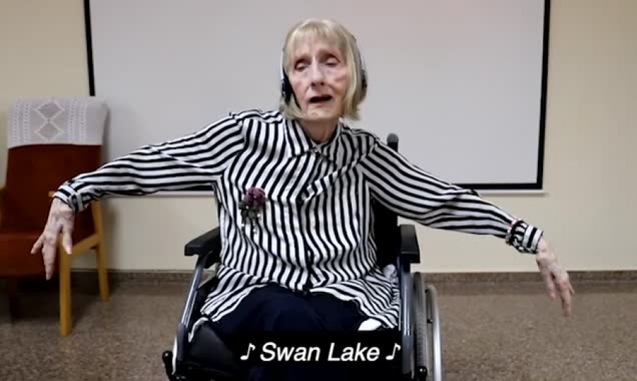 A carer places headphones on her and begins playing Tschaikovsky's Swan Lake - which Ms Gonzalez danced to in her youth
