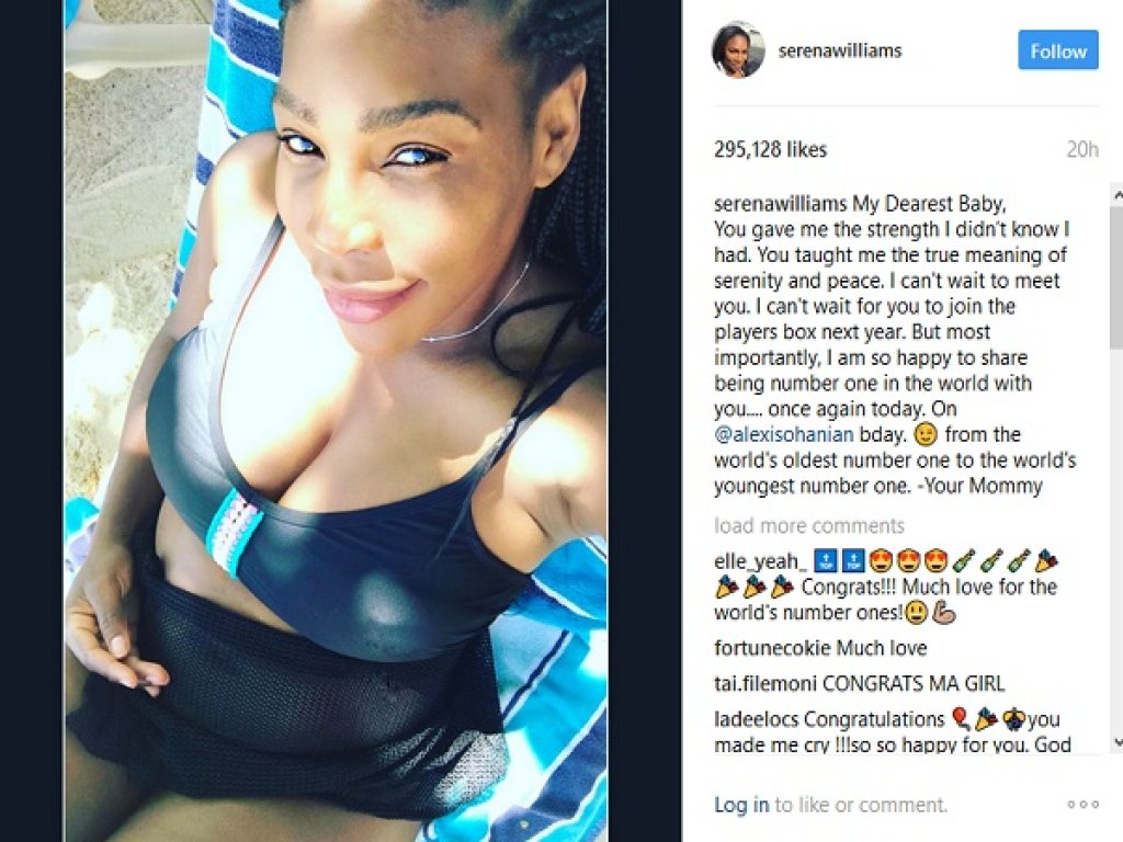 “Najdraže moje dijete, donijelo si mi snagu za koju nisam ni znala da postoji. Naučilo si me pravom značenju spokoja i mira. Jedva čekam da te upoznam. Neizmjerno sam sretna što upravo sa tobom mogu da proslavim činjenicu da sam opet prva teniserka svijeta… I to baš na današnji dan – na tatin rođendan. Od najstarijeg svjetskog broja jedan najmlađem – tvoja mama”, napisala je Serena na Instagramu.