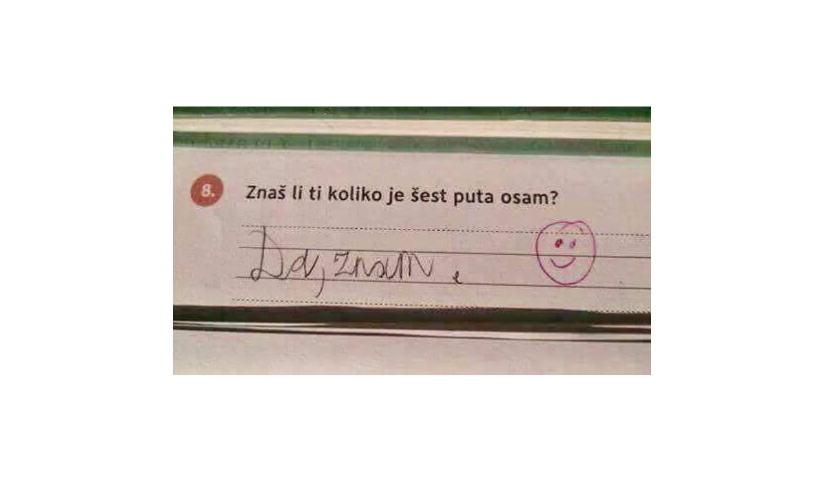 Na pitanje “Znaš li ti koliko je šest puta osam”, dječak je vrlo jednostavno odgovorio: “Da, znam”.