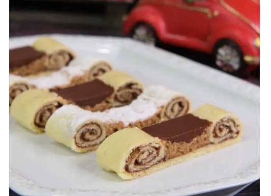 Ostavite da se kolači potpuno ohlade. Po želji pospite šećerom u prahu ili prelijte čokoladnom glazurom (otopite čokoladu i ulje na pari). Kad se glazura stvrdne, narežite na komade širine oko 2 cm.