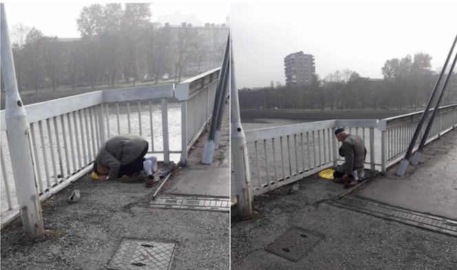 Bilo hladno ili ne, dedo je na mostu, a kako ne može ostaviti svoj štand da bi otišao u obližnju džamiju kada nastupi vrijeme za namaz, ni slučajno ga ne želeći propustiti, dedo klanja na svom “radnom mjestu”.