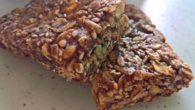 Sve dobro promešajte i izlijte preko nauljenog pleha, ili preko pak papira za pečenje. Ravnomerno rasporedite smesu i razvucite je do željene debljine. Ostavite kolač da se ohladi i stegne, pa ga izrežite ili u standardne štanglice ili neke druge oblike prema vašoj želji.