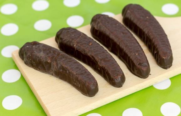 Na šporetu u šerpici kuvajte šećer i vodu dok ne počne da peni, pa prohladite. Želatin razmutite u malo vode pa dodajte u šerpicu, na tihu vatru, pa mešajte 5 minuta. Sklonite sa vatre i mikserom mutite 5 minuta, dodajte ekstrakt banane pa mutite još malo. Smesu izlijte u kalup obložen uljem pa prelijte rastopljenom čokoladom. Stavite u frižider da se ohladi i stegne.