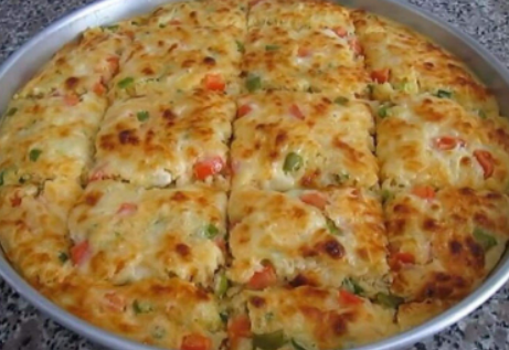 Krompir, paradajz, zelenu papriku i zeleni luk isjecite na sitne kockice. Paradajzu skinite kožicu. Zatim umutite jaja, pa dodajte povrće, so, sjeckanu fetu, ulje i mlijeko. Dobro promiješajte. Na kraju dodajte brašno i prašak za pecivo. Kalup prečnika 32 cm premažite puterom. Sipajte smjesu, pospite rendani sir preko i pecite na 200°C nekih 30-35 minuta.