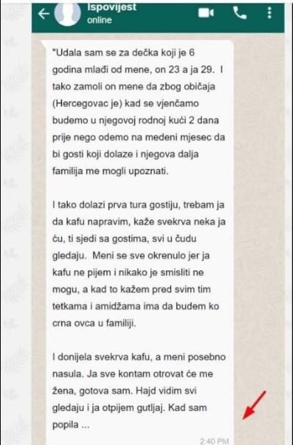I donijela svekrva kafu, a meni posebno nasula. Ja sve kontam otrovat će me žena, gotova sam. Hajd vidim svi gledaju i ja otpijem gutljaj.Kad sam popila …