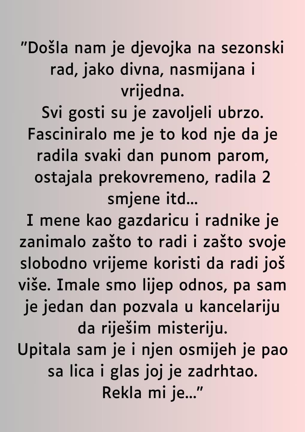 “Došla nam je djevojka na sezonski rad, jako divna, nasmijana i vrijedna.