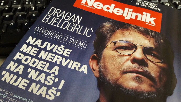 Sramota me je što devedesetih moja generacija nije progovorila o svim ratnim zločinima, iako sam ja to uradio u „Lepim selima“, rekao je u intervjuu za beogradski „Nedjeljnik“ glumac Dragan Bjelogrlić