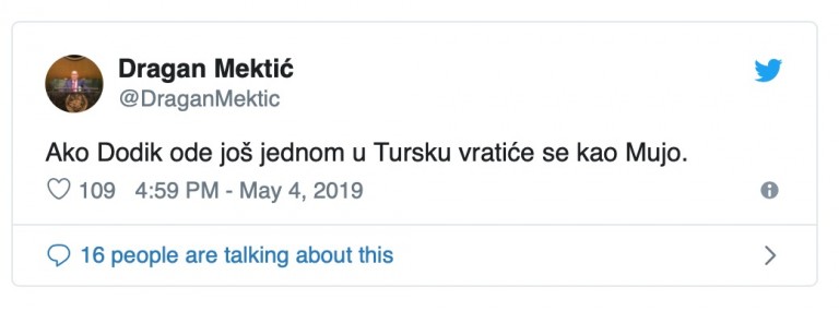 “Ako Dodik ode još jednom u Tursku vratiće se kao Mujo”.