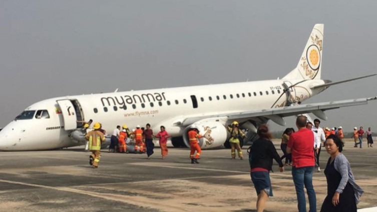 Let mianmarske državne aviokompanije iz Jangona u Mandalaj u nedjelju je završio slijetanjem bez prednjih točkova, objavila je ta kompanija. Avion Embraer je prevozio 82 putnika i sedam članova posade.