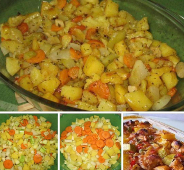 Rasporedite povrće u tepsiji, prelijte sa ostatkom ulja iz posude u kojoj ste mešali povrće.