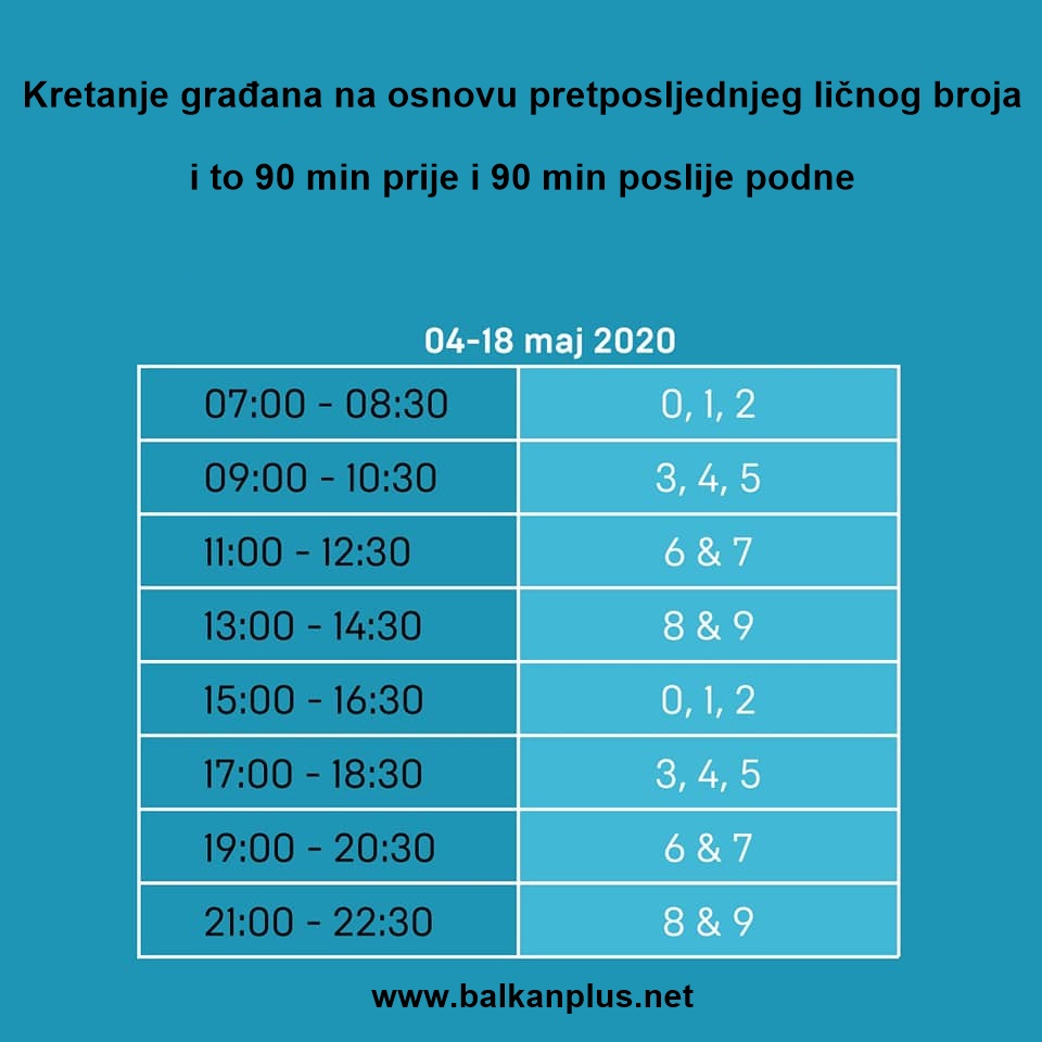 Raspored koji će se sprovoditi od sutra do 18. maja 2020. godine ,također je objavljen na web sajtu Ministarstva zdravlja.