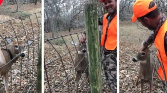 Dva su lovca pronašla i oslobodila mladog jelena s nogom zaglavljenom u žičanoj ogradi, a njegova mirna reakcija ih je začudila.