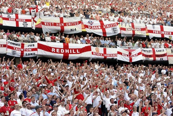 Nogometni savez Engleske izrekao je prvi put doživotne zabrane prisustvovanja mečevima reprezentacije i to dvojici navijača koji su se nedolično ponašali na utakmici protiv Njemačke, javlja BBC.