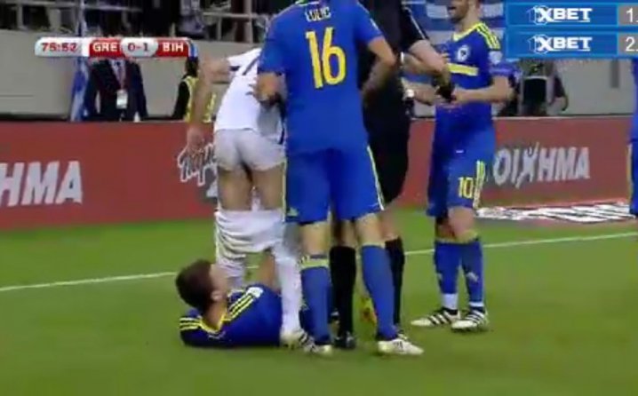 Desetak minuta prije kraja utakmice, došlo je do koškanja na terenu između igrača, pa je sudija pokazao crvene kartone Džeki i Papastadopulosu.