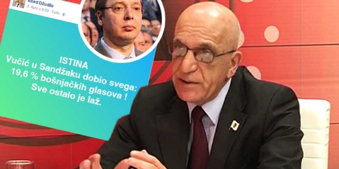 “ISTINA: Vučić je u Sandžaku dobio svega 19,6 % glasova, sve ostalo je laž”, napisao je na svom Facebook profilu jedan od potpredsjednika Bošnjačkog nacionalnog vijeća Esad Džudžo.