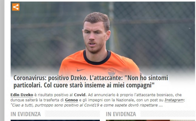 Naš reprezentativac potom je potvrdio na Instagramu kako je na današnjem testiranju bio pozitivan na koronavirus i on će propustiti naredne utakmice Rome i reprezentacije Bosne i Hercegovine.
