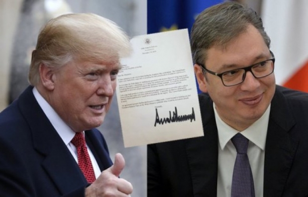 “Sjedinjene Države ostaju nepokolebljive u svojoj podršci Vašoj posvećenosti da produbite regionalnu saradnju, a naročito Vašim zalaganjima ka normalizaciji odnosa sa Kosovom. Dok je na stranama da postignu dogovor koji obe mogu da podrže, smatramo da bi uzajamno priznanje trebalo da bude centralni element trajne normalizacije odnosa. Takav istorijski dogovor, sa uzajamnim priznanjem u svojoj suštini, izgradio bi put za ciljeve evrointegracije Srbije i ekonomski rast”, navedeno je u čestitki Trampa.