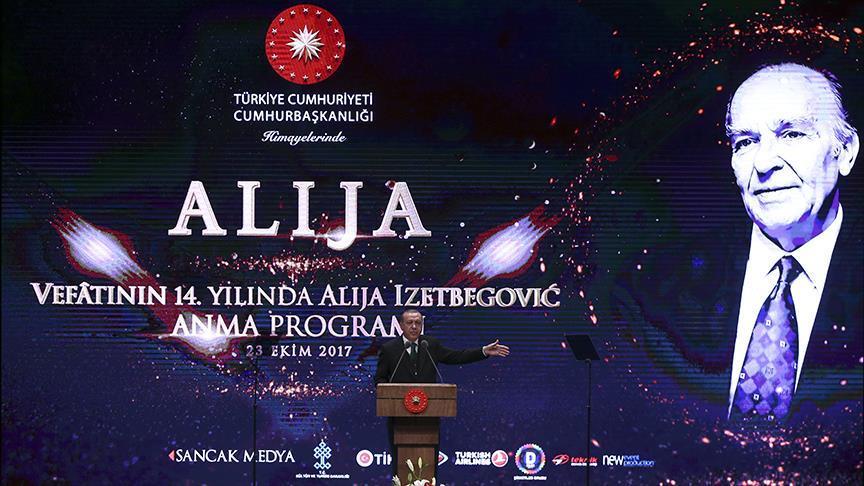 “Evropa je umrla u Bosni, a sahranjena je u Siriji. Mrtva tijela nevine djece na morskim obalama nadgrobni su spomenici zapadne civilizacije. Nažalost u posljednjih sedam godina evropske vrijednosti srušili su njihovi nositelji, uništivši ih jednu po jednu”, rekao je Erdogan u obraćanju na programu povodom 14. godišnjice smrti prvog predsjednika RBiH Alije Izetbegovića.