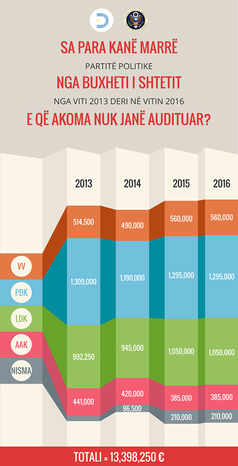 Institut “Democraci Plus” objavio je iznos sredstava koji je izdvojen iz kosovskog budžeta za parlamentarne stranke od 2013. do 2016. godine.