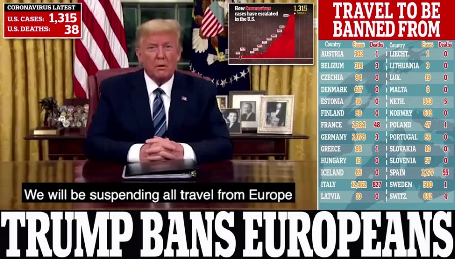 Američki predsjednik Donald Trump u obraćanju naciji objavio je da zbog situacije s koronavirusom uvodi zabranu ‘svih putovanja iz Europe u SAD’ na sljedećih 30 dana.