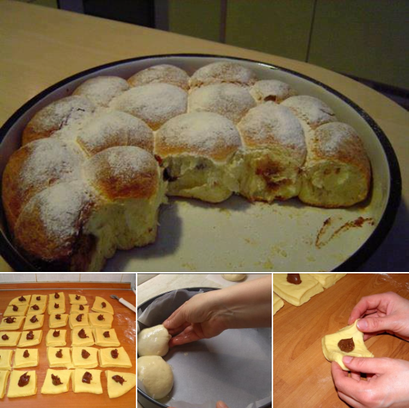 U posudu istresite toplog mlijeka, dodajte kvasac, šećer i brašna. Izmješajte, dobijte tijesto i ostavite da nadođe.