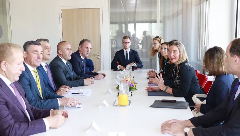 “Federika Mogerini sastala se s Hashimom Thaçijem, Ramushom Haradinajem, Kadri Veselijem i Behgjetom Pacollijem uoči dijaloga uz posredovanje EU ali takođe da razgovara o liberalizaciji viza i napredovanje na evropskom putu”, napisala je Maja Kocijančić na Twiteru.