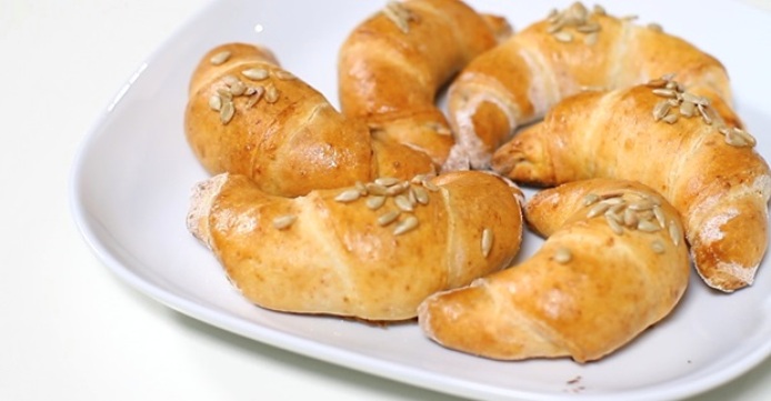 Rastanjite ga kao za obične kiflice i isecite na trougliće. Ja sam dobila 16 komada od ove količine. Puni te ih sirom ili nečim drugim po želji. Urolajte kiflice i poređajte ih u podmazan pleh. Premažite ih razmućenim žumancetom sa pavlako i pospite mrvice.