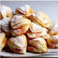 Ugrijati mlijeko. Odvojiti malo i staviti kvasac da uskisne. Ostalo mlijeko staviti u posudu u kojoj ćete mijesiti pa dodati mineralnu vodu, šećer, sol, žumance i utučeno bjelance.U to staviti uzašli kvasac i polako dodavati brašno da dobijete.mekano tijesto (ne premekano).Ostaviti da udvostruči obujam, razvaljati i mazati samljevenim salom(može i margarin) i tijesto preklopiti kao za lisnato tijesto. Ostaviti da miruje 1/2 sata. Sve ponoviti još dva puta. Nakon toga razvaljati, rezati na trokute, na svaki trokut staviti malo marmelade, zaviti i ostaviti kifle da narastu pa staviti peći na 200 stupnjeva.Pečene posuti šećerom u prahu.Kad mi nestane sala kojeg uvijek stavim u zamrzivač da imam u toplijim danima zamijenim ga margarinom.