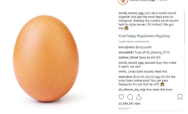 Fotografija jajeta oborila je dosadašnji rekord Kylie Jenner koja je imala najviše lajkova na jednoj objavi na Instagramu. Jenner je držala lidersku poziciju sa 18 miliona lajkova, a sada je jaje broj jedan.