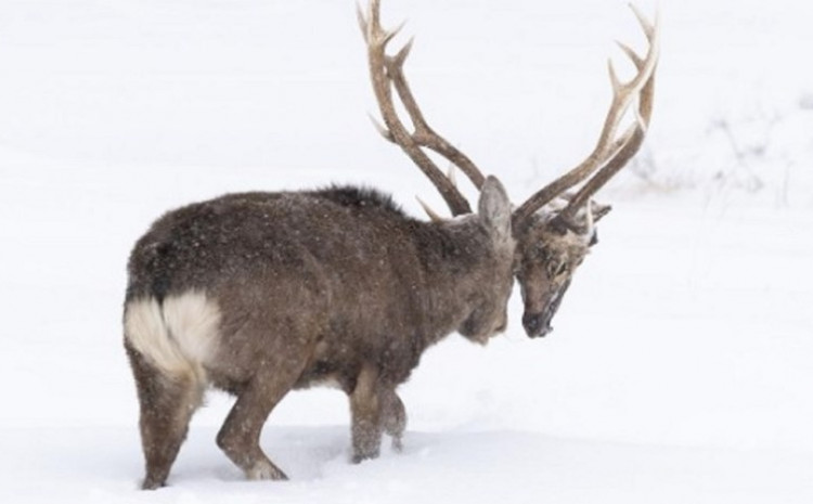 Naime, ona je snimila fotografiju sika jelena koji je lutao snježnim terenom s glavom drugog jelena zaglavljenog među rogovima.