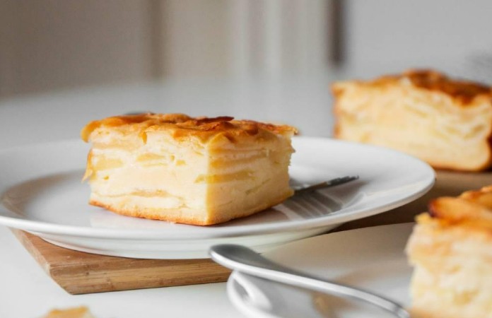 Pripremite jabuke.Jabuke ogulite i narežite listiće, pa prelijte limunovim sokom i Calvadosom (poslužit će i neki drugi liker, rum ili konjak).