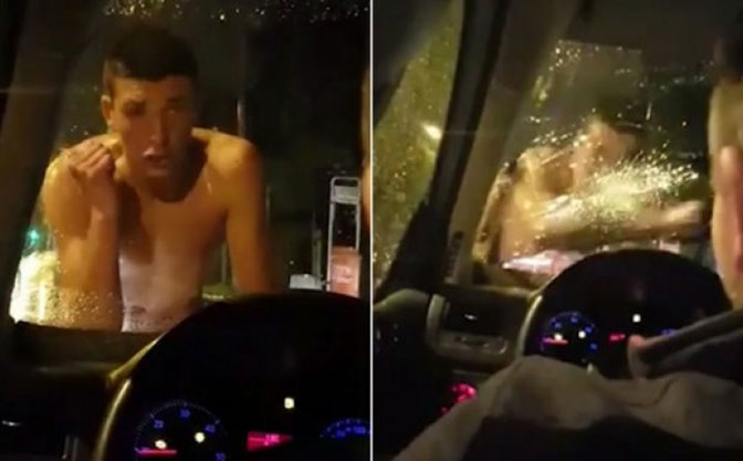 Mladić je uspio da mu razbije šoferšajbnu, a potom je krenuo na vozača koji je samo nastavio pravo, bez ikakve rasprave.