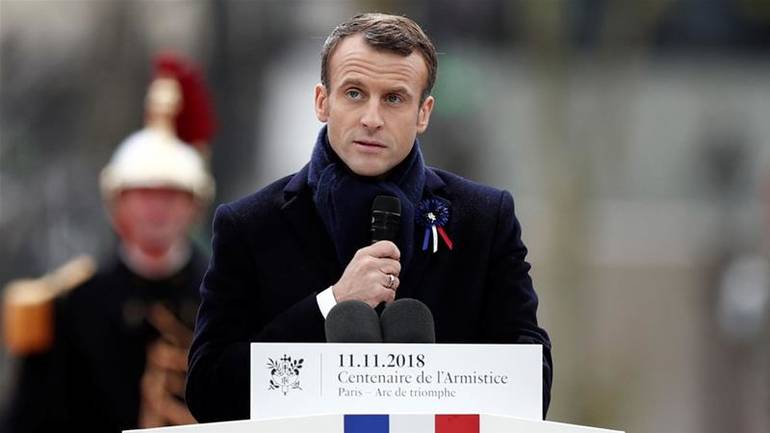 Francuski predsjednik Emmanuel Macron rekao je danas u obraćanju na ceremoniji obilježavanja 100. godišnjice od završetka Prvog svjetskog rata da se Evropa zamalo samouništila u paklu rata, te je pozvao okupljene svjetske lidere da se bore za mir, javlja Beta.