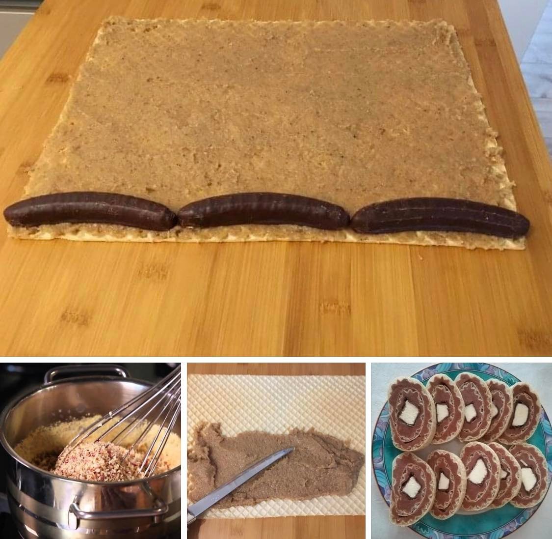 Krem bananice (čokoladne ) poslaži s jedne i druge strane po rubu oblatne i zarolaj prema sredini ( kao za mačje oči