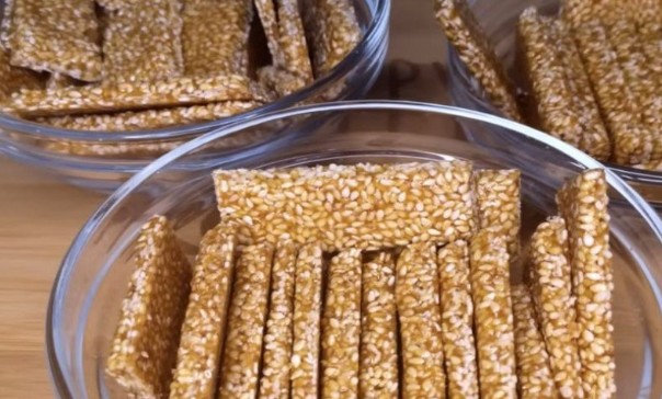 Za štanglice prvo obložite mali pleh papirom za pečenje. Premažite papir tankim slojem maslinovog ulja i ostavite sa strane. Prepecite susam. Dodajte susam u tiganj i stavite na srednju vatru. Prepecite, mešajući drvenom kašikom, dok ne porumeni, a zatim prebacite na tanjir.