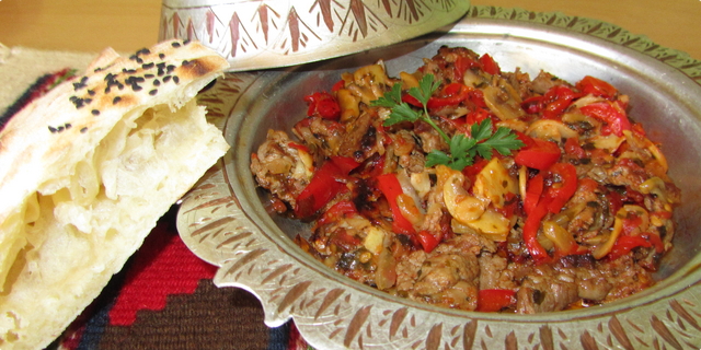 - Meso se izreže na kockice, posoli i naglo preprži na puteru.