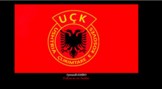 Ispod grba Oslobodilačke vojske Kosova, stoji natpis “jesuisRambo”.