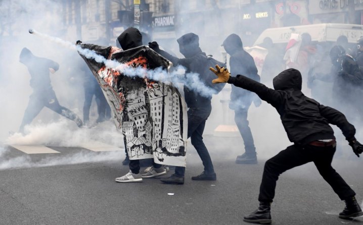 Do incidenata je došlo na kraju kolone, a sudionici nereda su nosili maske, kapuljače i crne naočale, mašući anarhističkim zastavama i povremeno bacajući dimne bombe, javlja Local.fr.