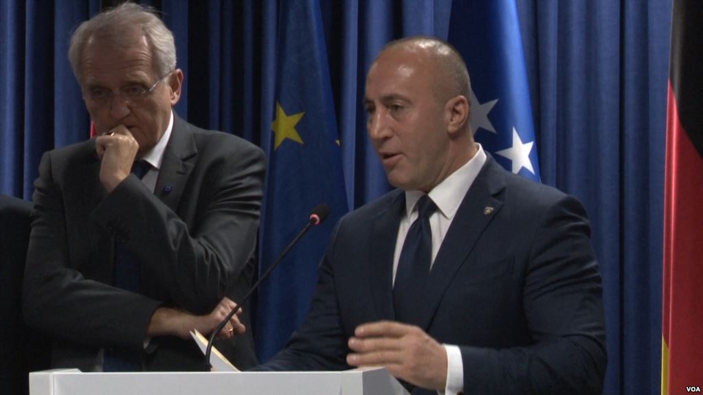 Evropski zvaničnik i premijer Kosova razmenili su i poklone na jučerašnjoj konferenciji za novinare u Prištini. Rajner Viland je kosovskom premijeru poklonio voz igračku, a Haradinaj je njemu uručio zlatnu mapu Kosova.