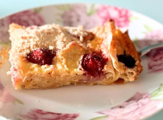 Pomiješati sve sastojke za preljev pa premazati svaku koru za savijaču. Složiti je u lepezu pa, jednu do druge, slagati u manju posudu. Dno posude također premazati preljevom.