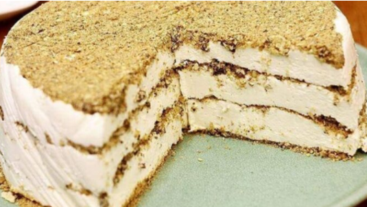 Staviti red kreme, pa posuti pripremljenom smjesom lješnjaka i oblatne, tako redom dok se sva smjesa ne potroši, na kraju ide krema.Pokriti aluminijskom folijom i ostaviti jedan dan u zamrzivaču.Umutiti vrhnje za šlag, na biskvit staviti smjesu iz zamrzivača, premazati cijelu tortu šlagom i ukrasiti po želji.
