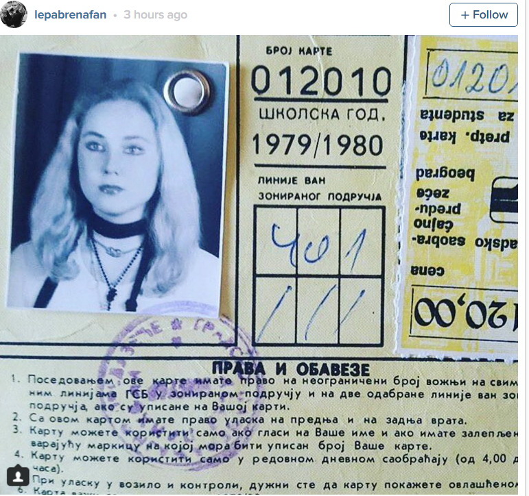 Naime, ova markica za prevoz važila je za 1979/1980 godinu, kada je Brena imala svega 19 godina.
