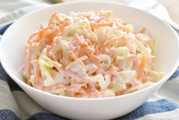 Sastojci:1/2 velikog kupusa;2 srednje šargarepe ;1/4 crnog luka ;240 g majoneza;3 kašike pavlake;1 kašika sirćeta;1/2 kašičice soli;2 kašičice šećera;1 kašičica senfa;