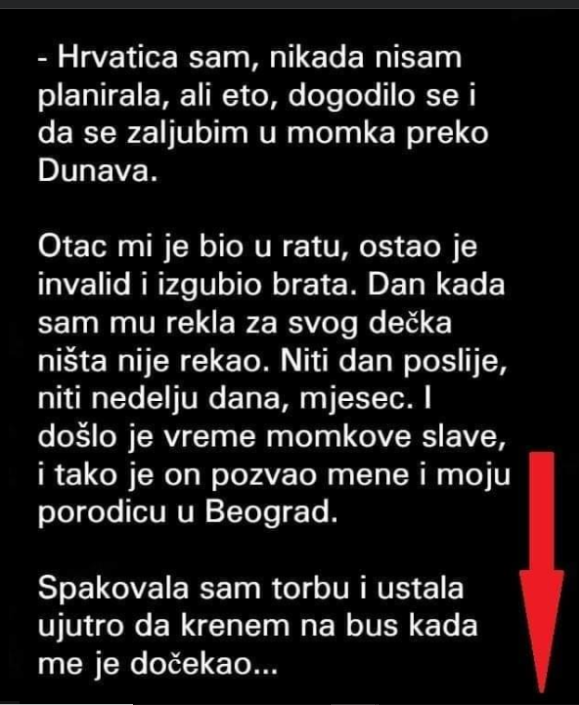 Niti dan poslije, niti nedelju dana, mjesec. I došlo je vreme momkove slave, i tako je on pozvao mene i moju porodicu u Beograd.