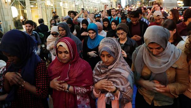 Demonstranti su se u znak protesta okupili ispred Trumpovog tornja gdje su imali zajednički iftar (večernji obrok tokom islamskog mjeseca ramazana koji se prekida dnevni post).