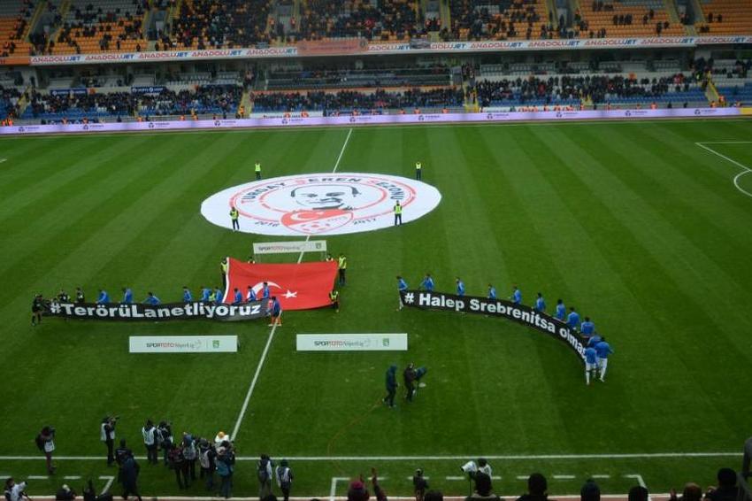 Igrači Basaksehira i Trabzonspora su po izlasku na teren istaknuli transparente na kojima je pisalo: “Proklinjemo terorizam, nikad više Srebrenica i Alep”.